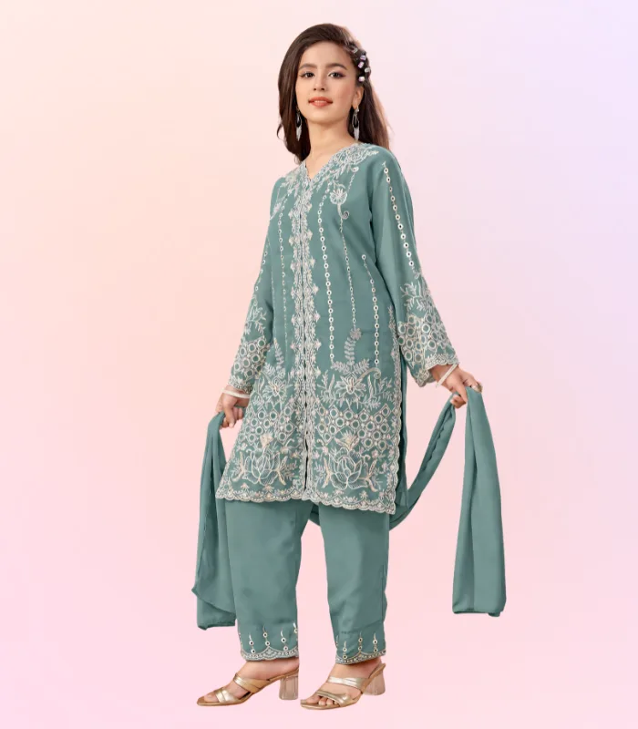 Aqua Elegance Embroidered Kurta Set