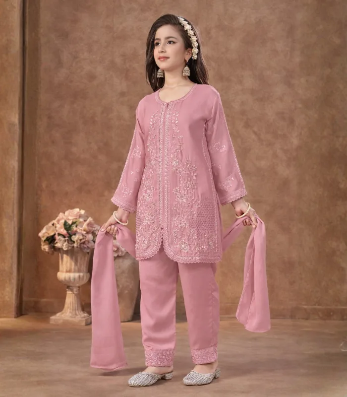 Rose Mist Embroidered Kurta Set