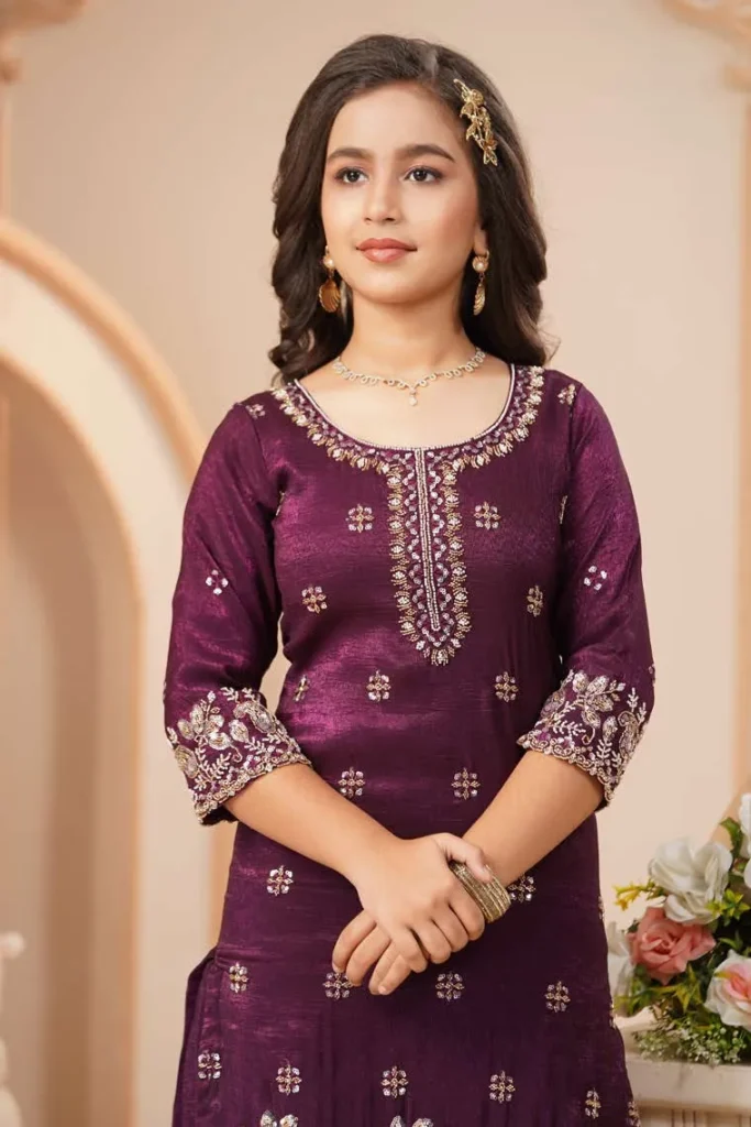 Royal Plum Embroidered Kurta Sharara Set with Dupatta