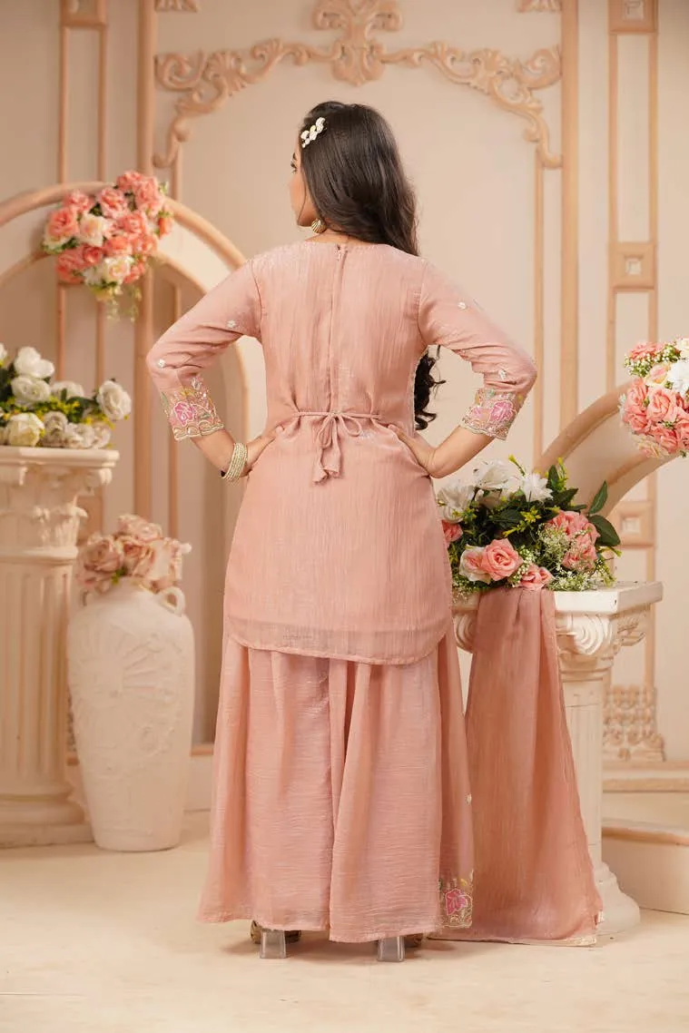 Blush Peach Floral Embroidered Kurta Sharara Set
