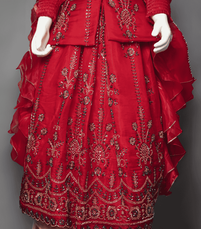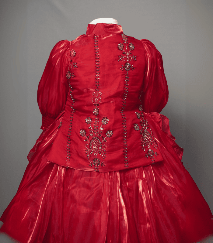 Dress your little princess in timeless elegance with our Royal Ruby Embroidered Gown – a true showstopper crafted for festive occasions, weddings, and formal events. This stunning red gown features: